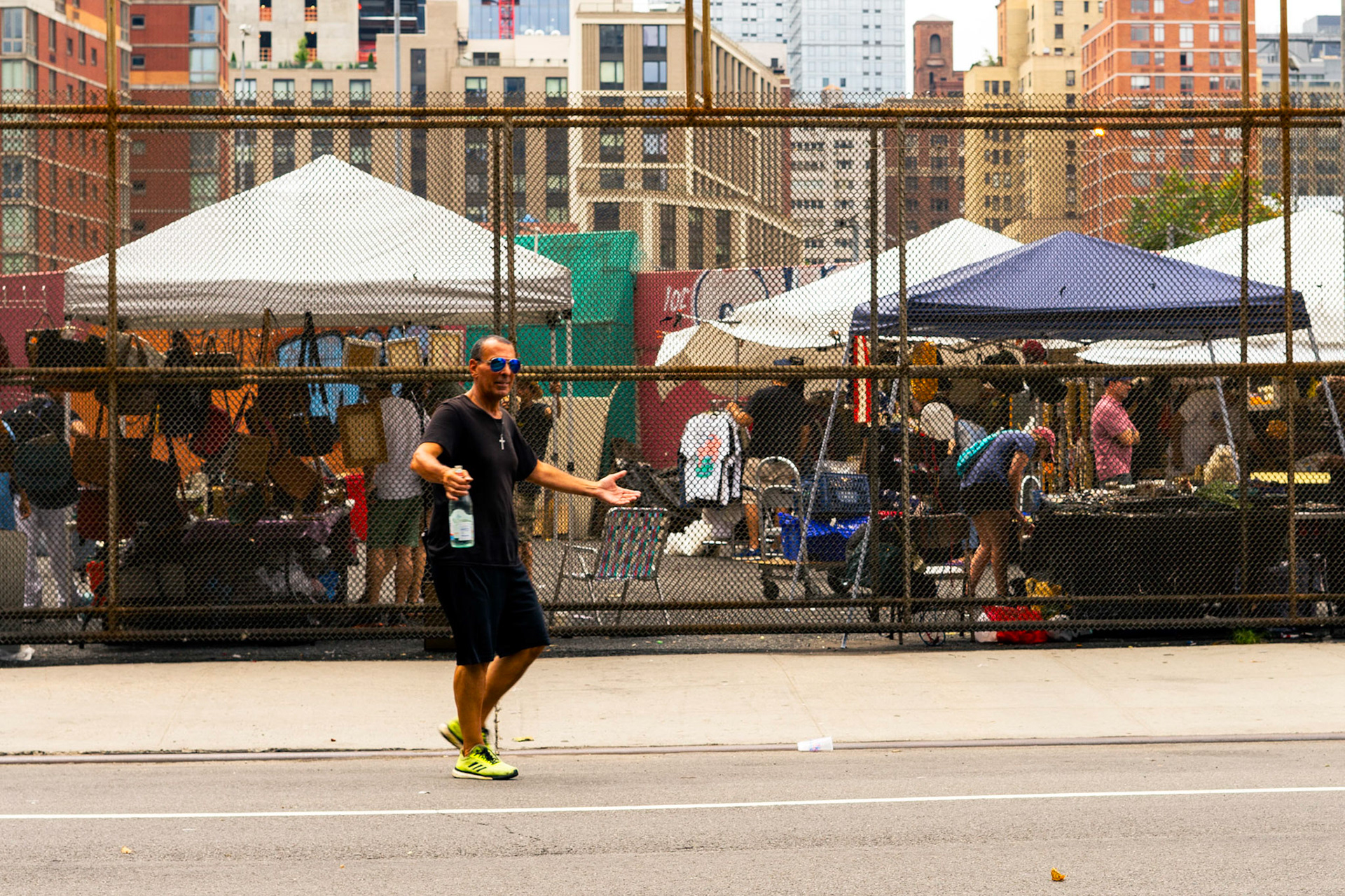 L’objet de cette exposition, c’est aussi de montrer des solitudes qui se croisent sans se voir : des misfits à New York. Un enfant avec sa peluche Disney à San Francisco. Un prêtre à Santa Fe. Le personnel de ménage d’un hôtel, la nuit à Los Angeles. À Chicago, un vieil homme qui traverse péniblement une rue, un couple qui s’enlace devant deux policiers ; un autre qui se tient à la fenêtre d’un diner, le regard dans le vide, quelque part en Arizona.